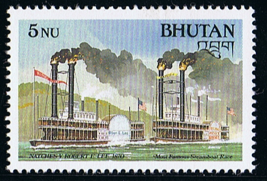 Bhutan 1988 5n sg731, scott? (the other steamer is the NATCHEZ).
