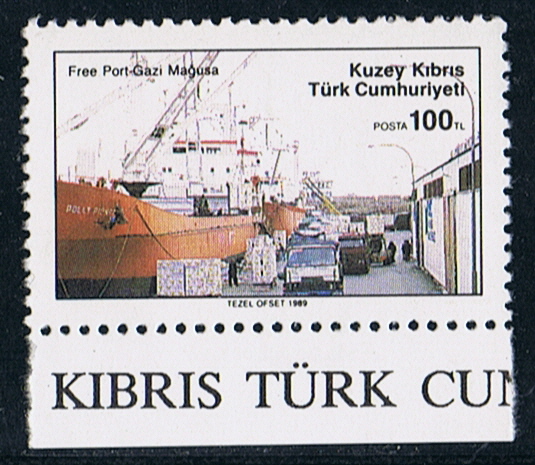 The first vessel alongside the quay on the stamp in the Free Port Gazi Magusa, Turkish Cyprus must be the POLLY PIONEER, the name POLLY you can clearly see on the bow of the ship, then a P or R is visible, the only vessel in the fleet of the PPI lines around 1989 with a P or R is the POLLY PIONEER.