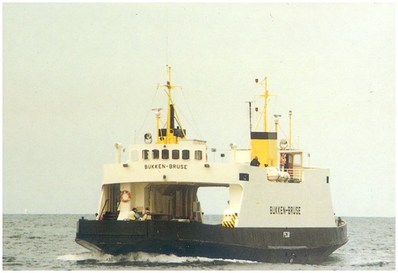 One of these ferries is the ro-ro ferry BUKKEN-BRUSE built in 1961 under yard no 437 by the Bergens Mek. Verksteder at Bergen, Norway for AS Ferjetrafikk at Bergen (Wilhelmsen AS Bergen).
