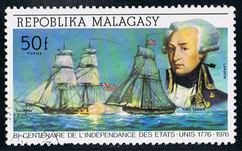The Malagasy stamp shows the EDWARD in action against the LEXINGTON.