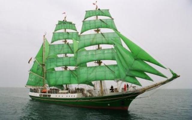 A newly established foundation, the Deutsche Stiftung Sail Training or DSST [German Sail Training Foundation] bought the vessel and transformed her into a Tall Ship based on her sailing ship hull. On 30 May 1988 she was christened Alexander von Humboldt after the celebrated German explorer. In a historical reference to the sailing ships of the Rickmers shipping company of Bremen, her hull was painted green. Green sails were installed as a marketing tool for advertizing campaigns by the ship's sponsor, the German brewer Beck's.