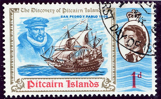 San Pedro y San Paulo. Bergantin. One of three vessels commanded by Pedro Fernandez de Quiros on his Pacific Expedition 1605-6 Stamp also shows the zabra Los Treyes Reyes.