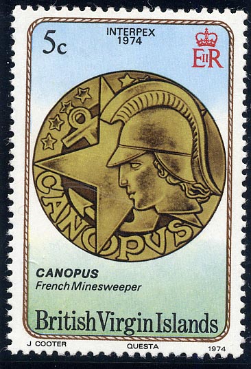 This stamp shows the crest of the coastal minesweeper Canopus of the French Navy (Dragueurs Cotiers), of the British "Sirius" class.