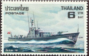 T91. Motor Coastal Patrol Vessel built by the Royal Thai Dockyard at Bangkok and commissioned in 1971. It has a displacement of 871/2 tons on dimensions of 104.3ft x 17.5ft x 5.5ft and a crew complement of 21.