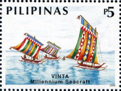 The VINTA depict on many stamps of the Philippines is a very fast double-outrigged canoe of the Samal, Tausug, and Bajau peoples of the Sula Sea.