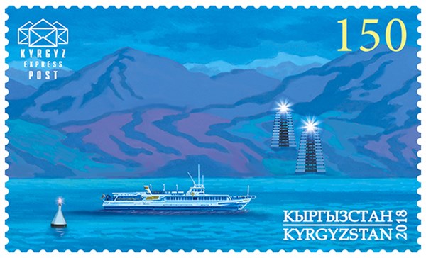 Kyrgyzstan issued in 2018 two stamps and a miniature sheet which shows us lighthouses around Lake Issyk-Kul with shipping on the lake.