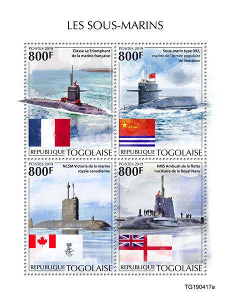Togo issued in 2019 a set of stamps and a miniature sheet with submarines.