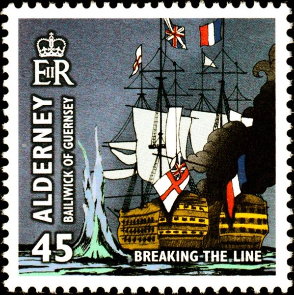 The HMS VICTORY did break the line at around 12.15 when she sailed between the REDOUTABLE and BUCENTAURE and did give to both ships his broadsides.