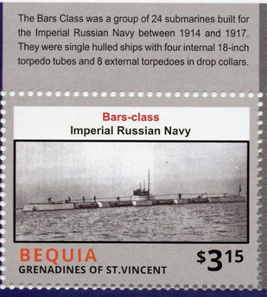 The Bars class were a group of submarines built for the Imperial Russian Navy during World War I. A total of 24 boats were built between 1914 and 1917. A number of them saw action during the First World War, and three were lost in the conflict. The surviving boats were taken over by the Soviets after the Bolshevik Revolution and a number of them remained in service until the 1930s.
