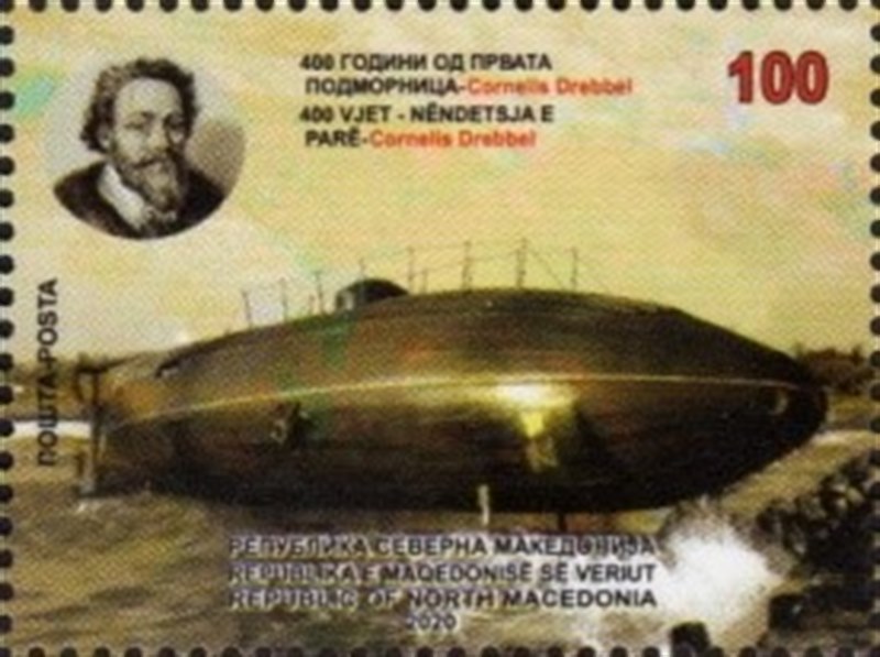 In 2010 The Netherlands issued a set of stamps for the 100 anniversary of the “Octrooi Wet” (patent act), one of this stamps is interesting for ship stamp collectors, the stamp depicts the first submarine built in the world by the Dutch inventor Cornelis Drebbel. The submarine did not fall in the timeframe of the patent act.
