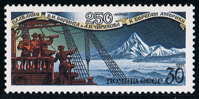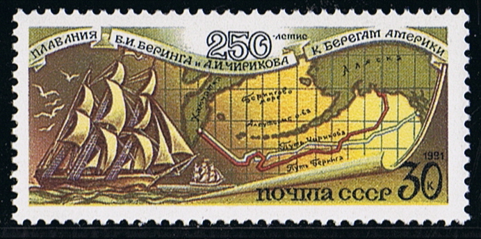 From there Bering led an expedition towards America in 1741. On 4 June 1741 Bering sailed from Kamchatka aboard the St. PETER with Lieutenant Aleksey Chirikov commanding the St. PAUL. First the two captains headed southeast in search of the mythical da Gama Land, which was a prominent feature on an earlier map. Unfortunately, by the time Bering had altered his direction to the northeast, they had sailed hundreds of miles south while missing the entire Aleutian chain.