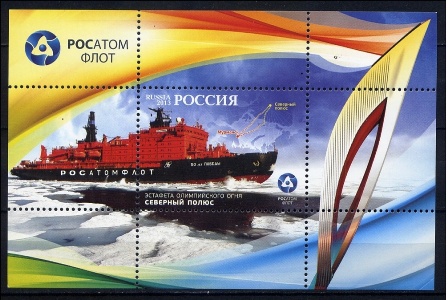 Russia issued a label in 2013 that the Russian nuclear powered icebreaker 50 LET BOBEDY travelled to the North Pole with on board the Olympic torch for the 2014 Sochi Olympic Winter Games.