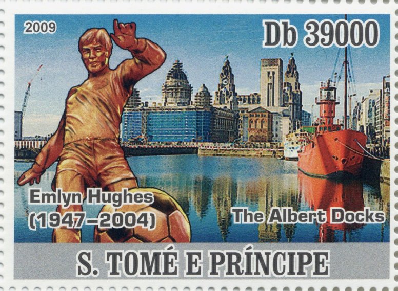 In 2009 S Tome & Prince issued a MS of 4 stamps showing various scenes in Liverpool. One of these stamps shows the Albert Docks.