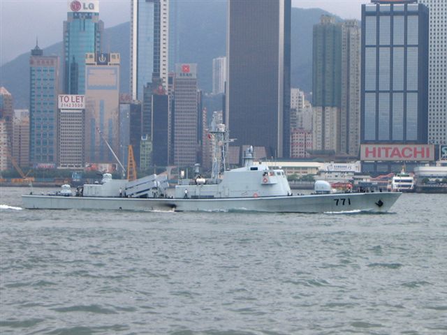 (15,840 sust.), speed 32 knots. Range by a speed of 18 knots 1.800 mile. Armament: 770–775: 6 C-801 YJ-1 (CSS-N-4 Sardine) SSM; 1 twin 37-mm 63-cal.