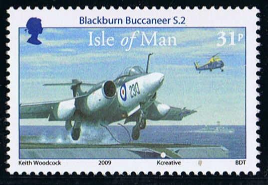 The 31p stamp features the first-long sortie carried out by a Blackburn Buccaneer that took place on June 3, 1966. At 13.20 a Royal Navy Buccaneer S2 from 801 Naval Air Squadron took off from HMS Victorious in the Irish Sea, on a non-stop, roundtrip sorties to Gibraltar. The aircraft’s pilot was Lieutenant John Cross, a Fleet Air Arm test pilot from the Empire Test pilot School and the Observer was 801’s Senior Observer Lieutenant Commander George Oxley.
