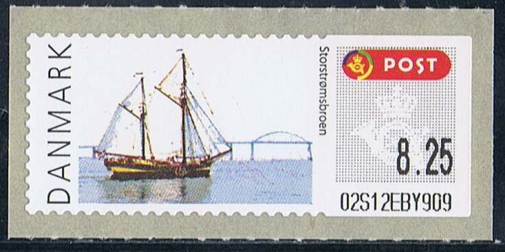 On the label she is seen nearing the Storstrøms Bridge which links the island of Falster and Sealand.