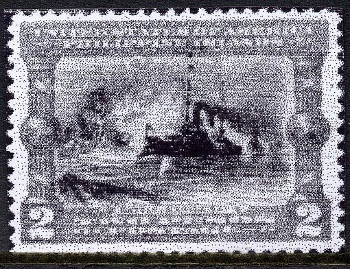 The stamp depicts the vessel being blown up by the U.S.S. OLYMPIA, a protected cruiser under the command of Admiral Dewey.