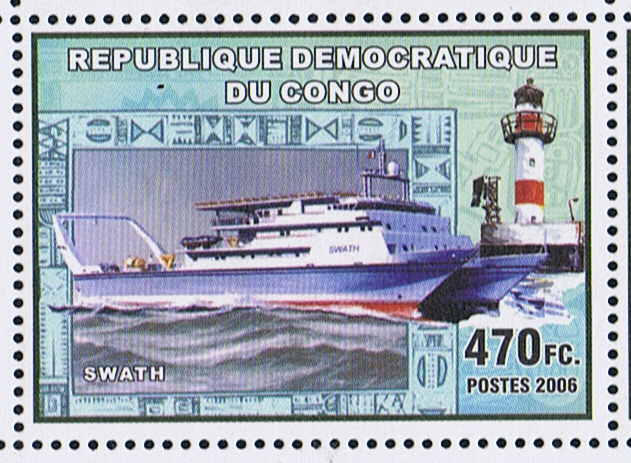 The http://www.swath.com/pictures.htm depict an EOS class passenger ship and the same design is depict on the stamp. If the design all is used for a new built ship I can not find.