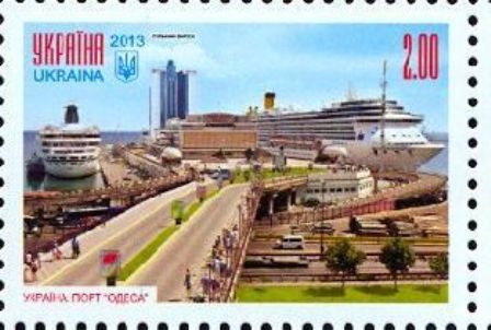 The Ukrainian stamps shows the cruise terminal in Odessa with two cruise ships, the largest on the right of the stamp is the COSTA MEDITERRANEA and the smaller cruise-ship which was identified by Mr. Peter Crichton as the MSC MELODY built in 1982 as the ATLANTIC.