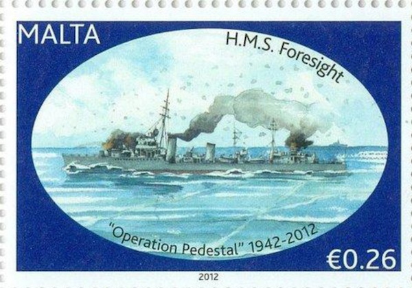 HMS FORESIGHT was a Royal Navy F class destroyer. She operated as a fast minesweeper during World War II and was scuttled after being damaged in an aerial attack during Operation Pedestal, an attempt to bring supplies to Malta.