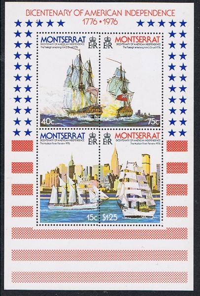 Montserrat 1976 75c sgMS395 (other vessels on the MS are the USS RALEIGH and the tall ships ESMERALDA and GLORIA.)