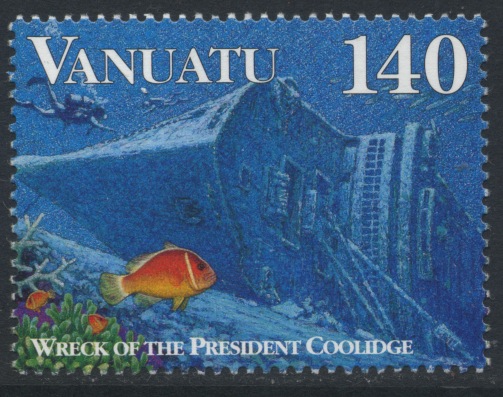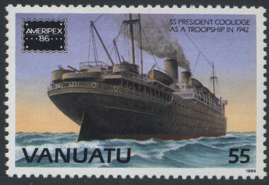 On 26 October 1942 at 09.06 a.m. the PRESIDENT COOLIDGE entered the approach channel, on 09.30 an explosion was heard and a few minutes later an other explosion, she had struck two mines laid by USS GAMBLE.