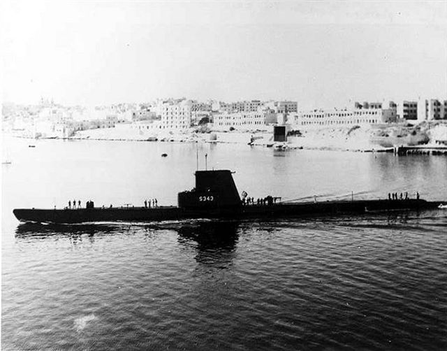 The submarine now carries the NATO pennant No. 5343. She has a displacement of 1,526 tons (standard), 1,829 tons (surface), and 2,424 tons (submerged). Her dimensions are 311 ft. 8 ins. x 27 ft. 2 ins. x 13 ft. 8 ins, and she is fitted with two 5-in., two 40-m.m. and four machine guns. She has ten 21-in, torpedo tubes (six bow, four stern) and carries 24 torpedoes; her machinery consists of General Motors 2-stroke oil engines of 6,500 b.h.p., giving a surface speed of 194 knots, with electric motors driving her at nine knots submerged. There is provision for 200 tons of fuel oil and she has an operational limit of 12,000 miles at 10 knots. Her complement is 78 to 85.