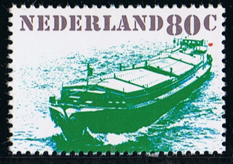 The stamp design is made after a photo taken on the Amsterdam-Rijnkanaal, the canal from Amsterdam to the River Rhine. The type of vessel was a common sight on Dutch canals and waterways.