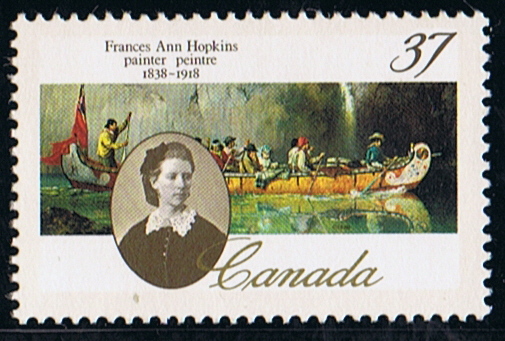 The photo on the stamp is made by William Notmam and depict Frances Anne Hopkins. The stamp was designed by David Nethercott of Ottawa.