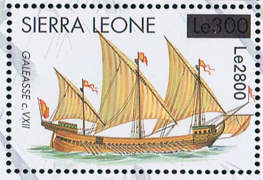 The stamp design of the Sierra Leone stamp is most probably made after a drawing in Björn Landström book “Sailing Ships” page 118/19 and he gives: