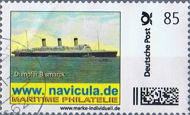 Our German ship on stamp group Navicula used two personalized stamps for sending their magazine to members in 2011. One depict the liner VATERLAND the other the BISMARCK.