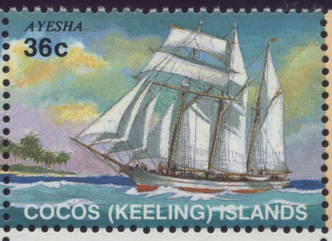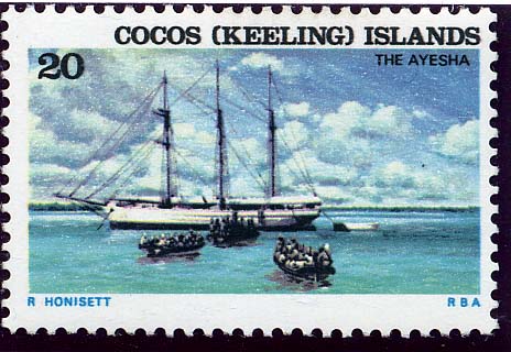 The Ayesha, named after the favourite wife of Mohammed, was a 3-masted schooner used for carrying copra and was empty when taken over by the German shore party from the Emden, as they were unable to get back to their ship, which had steamed away from them at the approach of the Sydney.