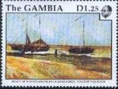 On the stamp, not so good visible as on the painting are different fishing vessel depict on the beach, which were called BOM’s and which worked from the flat beaches from Scheveningen and other fishing ports on the west coast of the Netherlands.