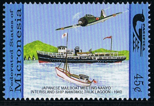 The mailboat depict on this stamp is most probably the Japanese vessel NANTAKU MARU.
