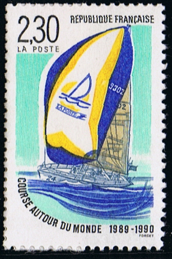 The yacht depict on this stamp is the French yacht La POSTE designed by Frers & Beneteau.