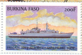 HMS Alacrity (F174) was a Type 21 frigate of the Royal Navy. Built by Yarrow Shipbuilders Ltd, Glasgow, Scotland, she was completed with Exocet launchers in "B" position.