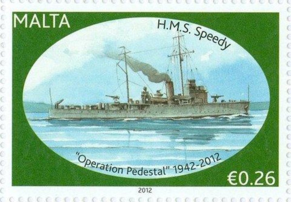Her next service was escorting an important Malta convoy ('Harpoon') to the Mediterranean. On 15 June 1942 one of the convoy, the British tanker KENTUCKY was disabled by aircraft. SPEEDY took her in tow, but owing to the risks involved in delaying the convoy KENTUCKY had to be sunk. For more than twelve months SPEEDY remained at Malta, and after the Allied invasion of North Africa (Operation Torch) in November 1942, helped to sweep the route of the supply convoys which afforded such welcome relief to the island.