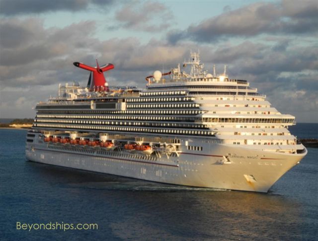 After completing used a combination of 7, 9, and 12-night cruises which all depart from Barcelona, Spain with the exception of her inaugural, leaving from Venice Italy. She is currently homeported in Galveston, Texas, which is CARNIVAL MAGIC spent her inaugural season, summer 2011, cruising the Mediterranean. She approximately 50 miles southeast of Houston, and alternates between 7 day Western Caribbean cruises to Montego Bay, Jamaica, Grand Cayman, Cayman Islands, and Cozumel, Mexico, as well as 7 day Western Caribbean cruises to Roatán, Belize, and Cozumel, Mexico; and 7 day Eastern Caribbean cruises to Key West, Florida, Freeport, Bahamas, and Nassau,