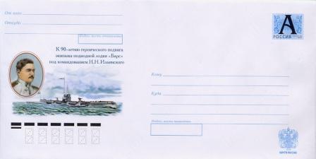 This submarine depict on this stamp is the single hulled BARS built on the Baltiyskiy Zavod in Petrograd (now St Petersburg) after a design of Ivan Bubnov also depict on the stamp. She was based of the designs of the Akula class submarines.