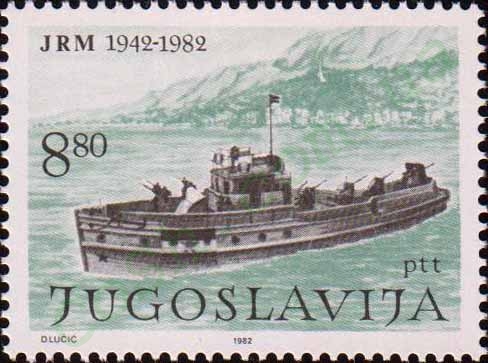 According Watercraft on Stamps II by Katherine A. Kirk is the vessel shown on this stamp of Yugoslavia the armed patrol boat PC21 used during World War II by the Partisan Navy of Yugoslavia.