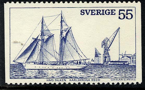 FALKEN. TWR masted Schooner. Built in 1947 at the Naval Dockyard, Stockholm for the Swedish Navy. Launched 12th June 1947. 220tons. L129'6". B23'6". Dr13'6". Fitted with Auxiliary diesel of 50bhp. Sail area 5.511sq.ft. + 1.044sq.ft. foresail. Steel hull. Complement of 15 crew + 38 cadets. Took part in the Tall Ship Races of 1956. 1966. 1968 and 1970. With her sister ship GLADAN makes summer cruises in the Baltic-Mediterranean - Sweden 1972. 550. SG692 (LB2/23. 3/70)