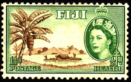 Fiji 1954 1½d + ½d sg296, scottB3. 1968 9d sg377, scott246.