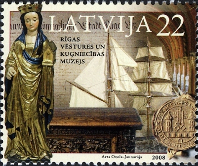 The stamp for the Museum Foundations of Latvia shows in the background of the stamp a model of a sailing vessel, which Mr. Sitnikov from Russia informed my that she is the training vessel JURNIEKS.
