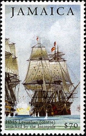 While the San Augustine lay alongside her portside after being boarded, LEVIATHAN was hotly engaged on her opposite side by the French INTRÉPIDE (74-guns), but as the HMS ORION, AFRICA and other British ships moved in the INTRÉPIDE pulled away.