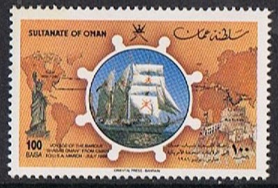 Oman 1986 100b sg 324, scott ?, the other ship on this MS is the SULTANA see index for her details.