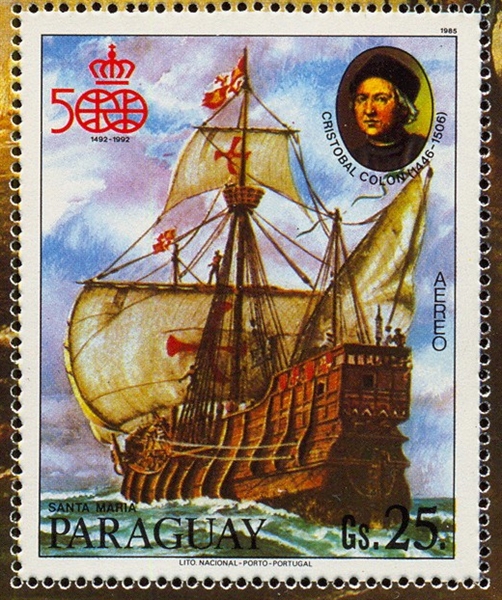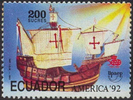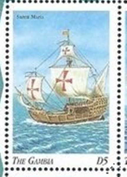 The ships Columbus used on his voyages to the New World are depict on many stamps; one of this is the Libya stamp of 1993 of 50dh.