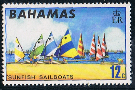 The Sunfish sailboat is a personal size, beach launched sailing dinghy utilizing a pontoon type hull carrying a lateen sail mounted to an un-stayed mast.