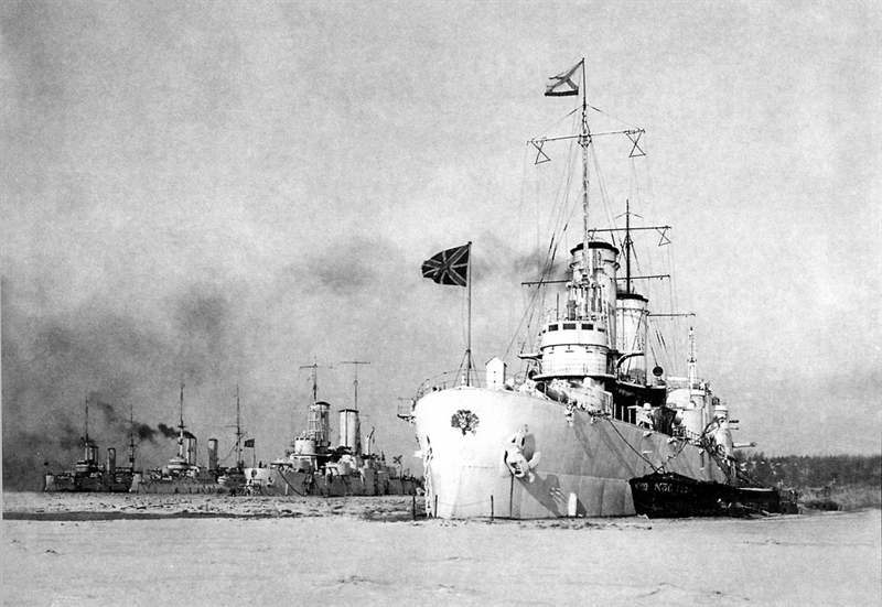 At that time the Russian squadron was under command of Vice-Admiral Bakhireff and the squadron consisted out of the battleship TSESAREVICH, one armed cruiser the BAYAN and eight destroyers, and had orders to defend the Gulf of Riga.