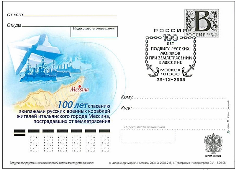 2008 Prestamped postcard: http://en.wikipedia.org/wiki/1908_Messina_earthquake