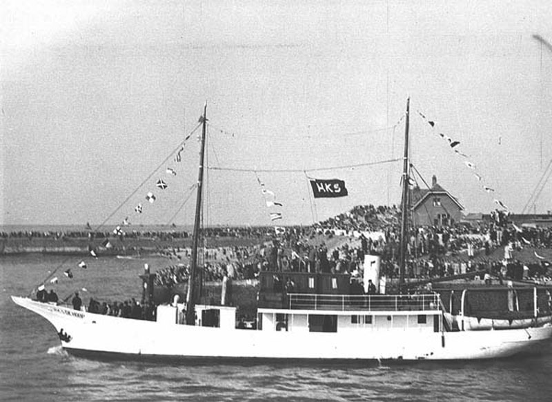 22 September 1955 sold for Fl 40,000 to Rasmus Rasmussen in Vedavågen, Norway, a Dutch crew under command of Captain W de Vreugd who had been on board the ship for 22 years, sailed his old ship to Haugesund were DE HOOP was taken over by his new owners.